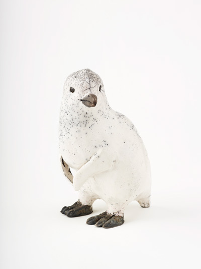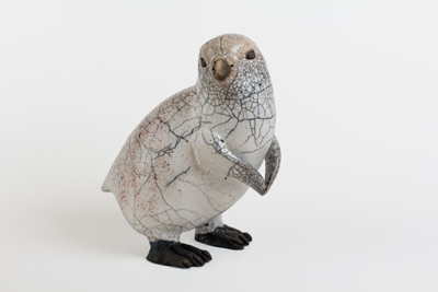 Martin Hanssons konstföremål är bl.a pingvinungar i brända i rakuteknik - med tång tas det varma godset ur ugnen och läggs i en tunna med sågspån. När elden kommit igång och det blivit tillräcklig rökutveckling kväver man elden, vilket reducerar föremålets syretillförsel. Färgförändringar och krakuleringar uppstår då, liksom svärtan.